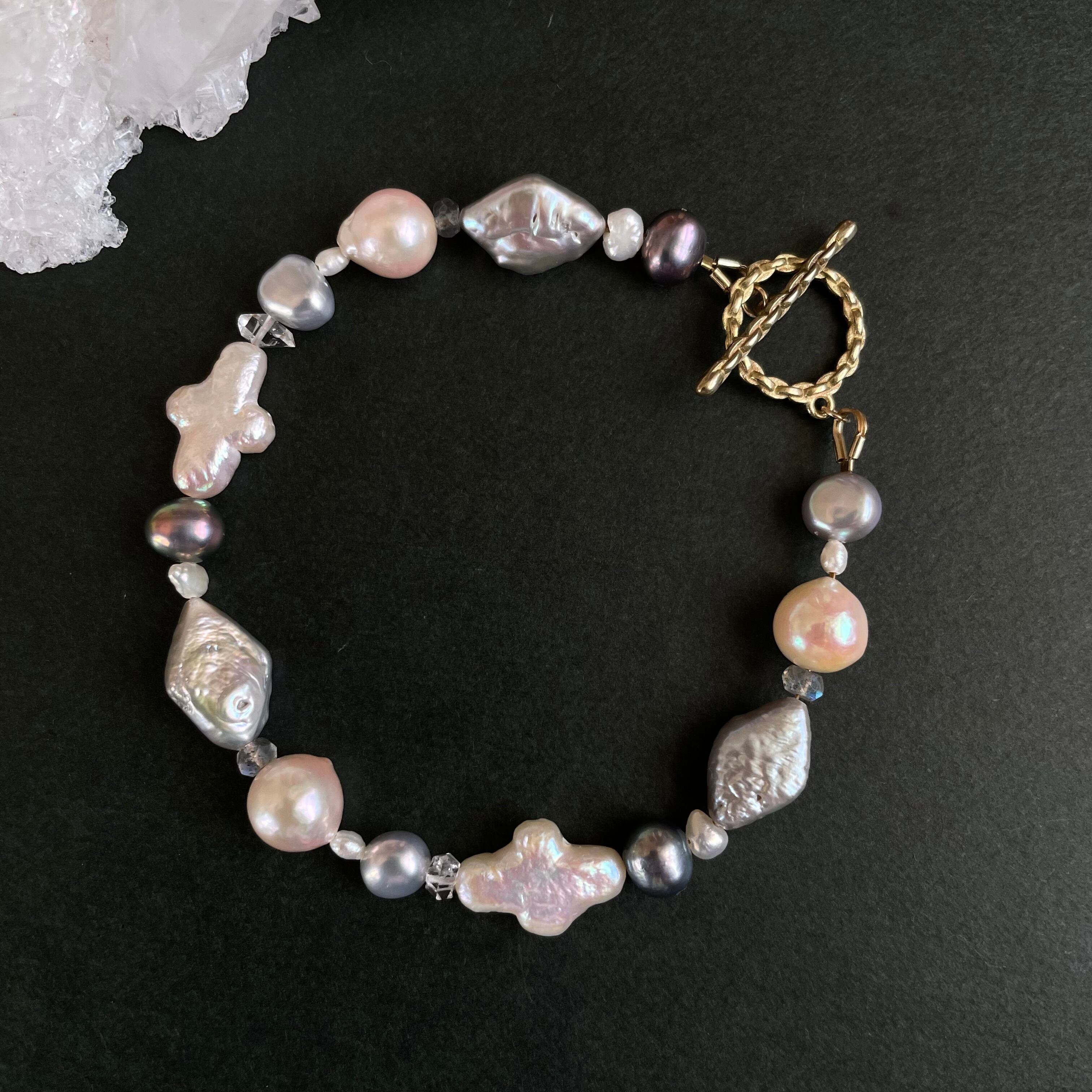 Mixパール×ラブラドライト×ダブルポイントクリスタル マンテル ブレスレット