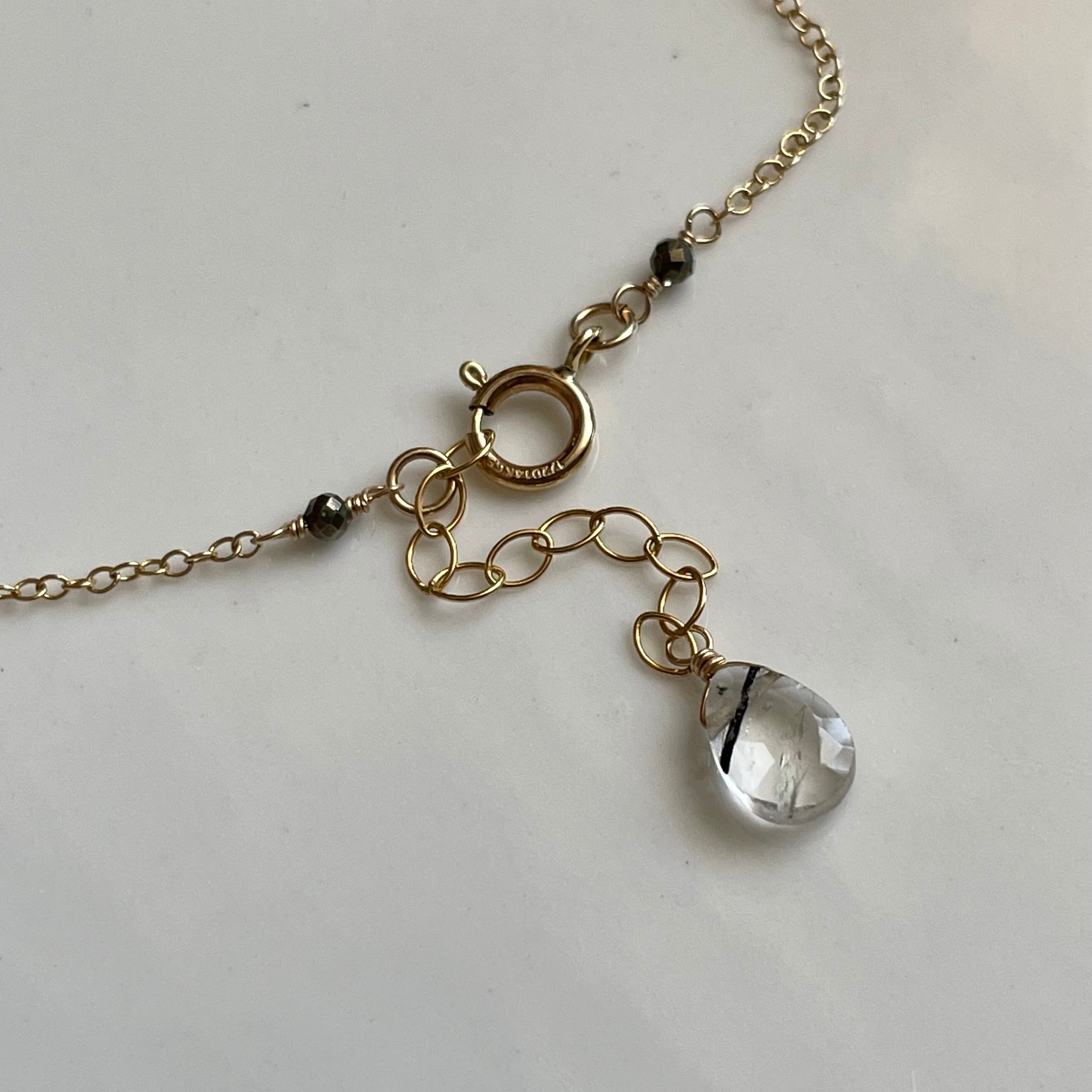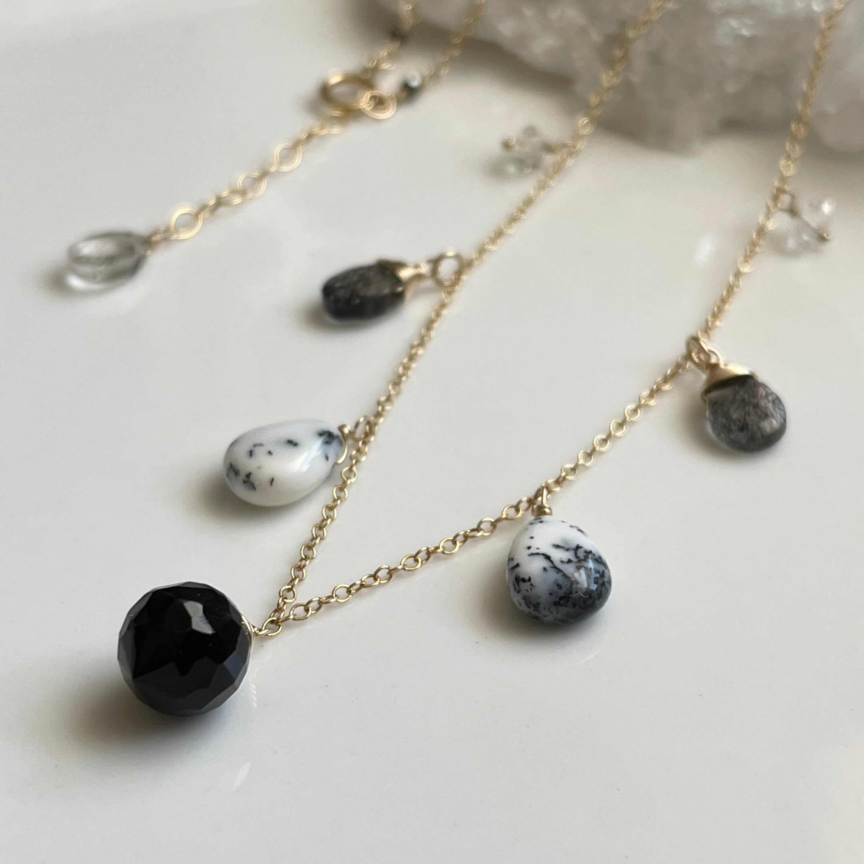 14kgf オブシディアン×デンドライトオパール×クォーツ ネックレス