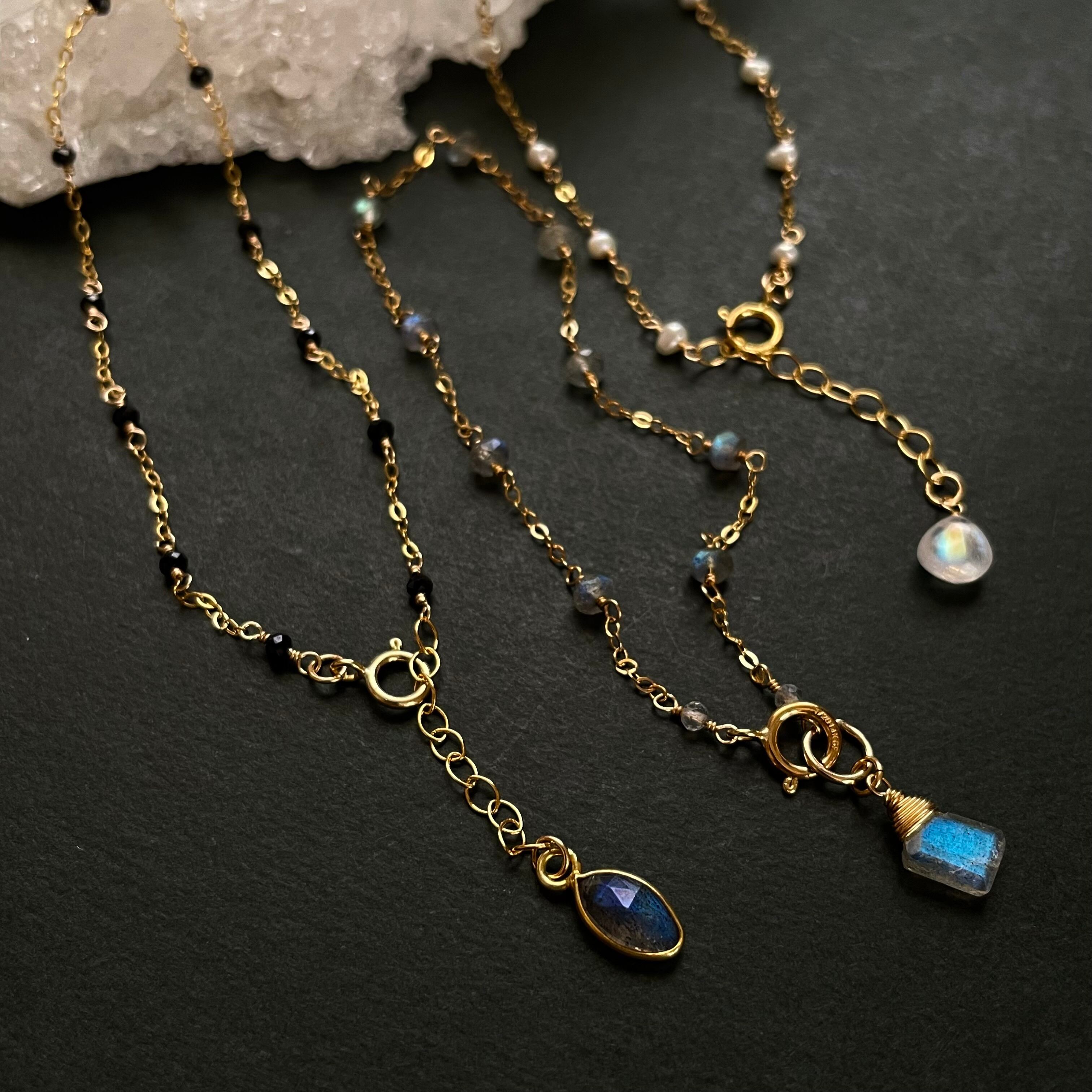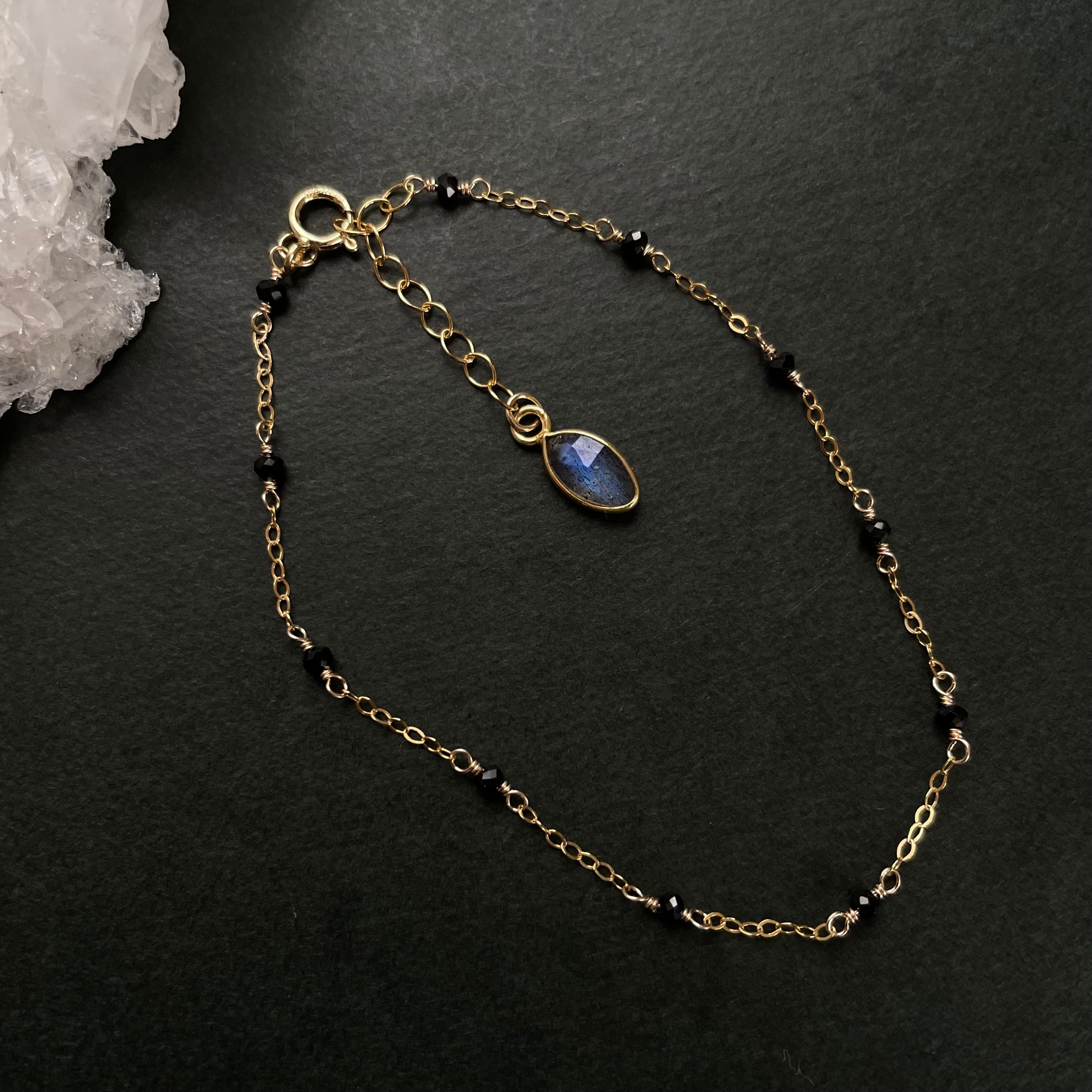 14kgf ブラックスピネル×ラブラドライト ステーション ブレスレット